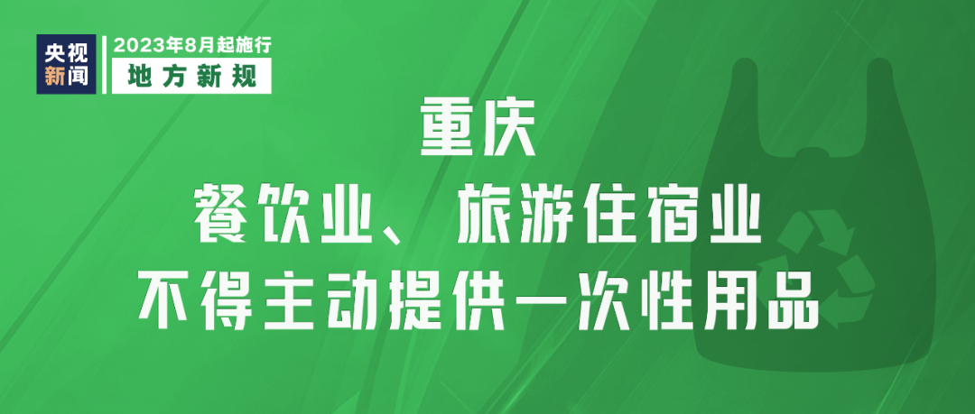 《重慶市一次性用品目錄清單管理辦法》8月1日起實(shí)施,要求重慶市餐飲業(yè)、旅游住宿業(yè)不得主動(dòng)提供一次性用品,鼓勵(lì)使用易降解、可回收再利用的綠色環(huán)保產(chǎn)品。外賣平臺(tái)應(yīng)積極引導(dǎo)消費(fèi)者減少使用一次性用品。